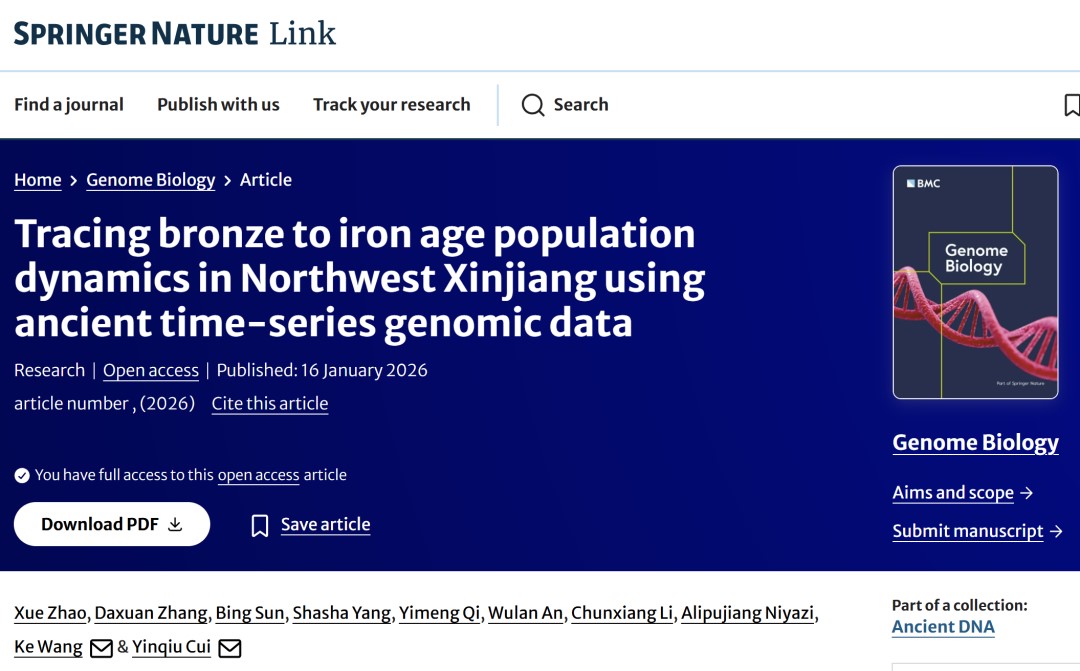 现代人类学教育部重点实验室王轲研究员团队利用古DNA技术,重建了新疆西北部那仁苏遗址人群长达2500年的连续遗传演化动态。该研究成果以“Tracing bronze to iron age population dynamics in Northwest Xinjiang using ancient time-series genomic data”为题,在国际权威学术期刊《Genome Biology》上发表。女优