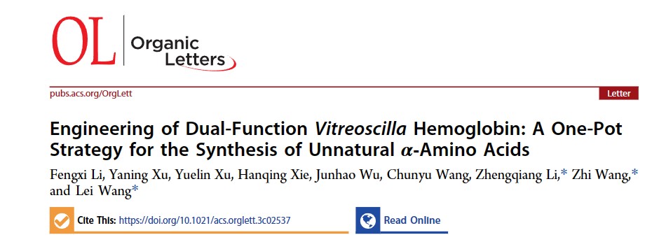 课题组进一步探索血红蛋白在非天然反应中的应用潜力,同时对血红蛋白的改造方式进行深入学习和拓展,使其获得新功能,以“Engineering of Dual-Function Vitreoscilla Hemoglobin: A One-Pot Strategy for the Synthesis of Unnatural α-Amino Acids”为题,在国际权威学术期刊《Organic letters》(影响因子5.2,中科院分区一区)在线发表研究论文。论文中提出了一种高效绿色的非天然氨基酸合成路线,通过工程化改造透明颤菌血红蛋白(VHb),使其成为同时具有高效的过氧化物酶和卡宾转移酶活力的双功能蛋白,催化以苯胺、重氮化合物、烷基硼酸类化合物为底物的体系先后通过N-H插入反应和C-H sp3烷基化一锅法合成了非天然氨基酸的衍生物,并且获得了理想的底物适用范围。这项工作也为后续血红蛋白的定向进化提供了更多的借鉴和依据。论文第一完成单位为女优