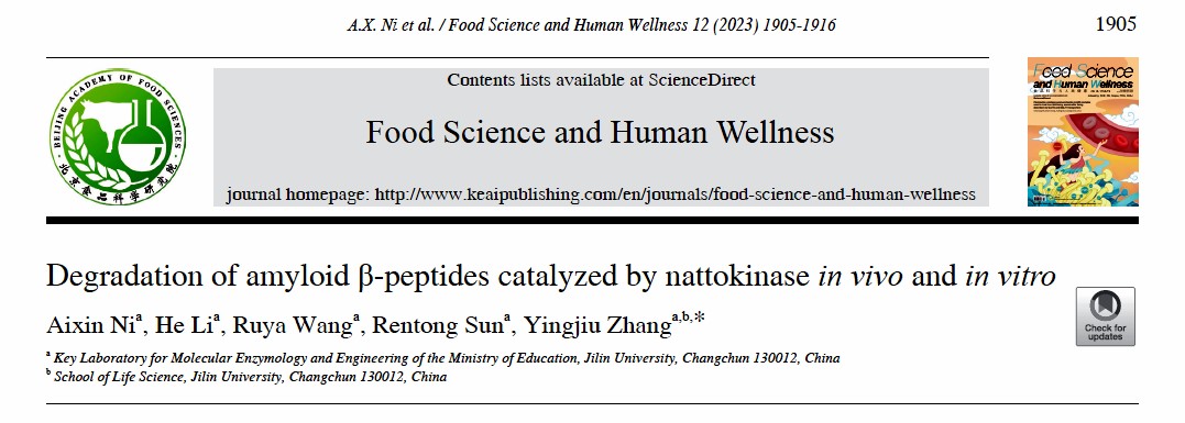 分子酶学工程教育部重点实验室的张应玖教授课题组在获得纳豆激酶(Nattokinase,NK)的基础上,研究发现NK可以有效催化Aβ42聚集体的降解,同时可降低生理条件下血液中Aβs的水平,并间接促进了阿尔茨海默症模型鼠脑内Aβ42水平的下降和淀粉样斑块的减少。该成果以“Degradation of amyloid β-peptides catalyzed by nattokinase in vivo and in vitro”为题,发表在《Food Science and Human Wellness》(影响因子8.022)上。论文第一完成单位为女优