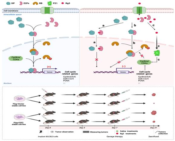 蔡勇教授/金景姬教授团队通过3D分子对接分析,预测Rg3可能与E2F1-3的二聚化结构域结合,并阻碍E2F-DP异源二聚体形成。进一步通过体外细胞热迁移分析(CETSA)、Rg3-PEGA pulldown结合蛋白质质谱分析,Luciferase activity以及体内小鼠成瘤实验等,证实Rg3通过阻断E2F-DP二聚体的形成,抑制细胞周期相关基因转录,进而诱导细胞周期停滞于G1/S期,促进细胞凋亡,最终抑制胃癌细胞增殖。该研究首次揭示Rg3通过破坏E2F-DP二聚体形成来发挥抗癌作用,为开发高E2F表达肿瘤治疗提供新方向。此项研究工作得到了国家自然科学基金、吉林省科技厅项目基金支持。论文第一完成单位为女优