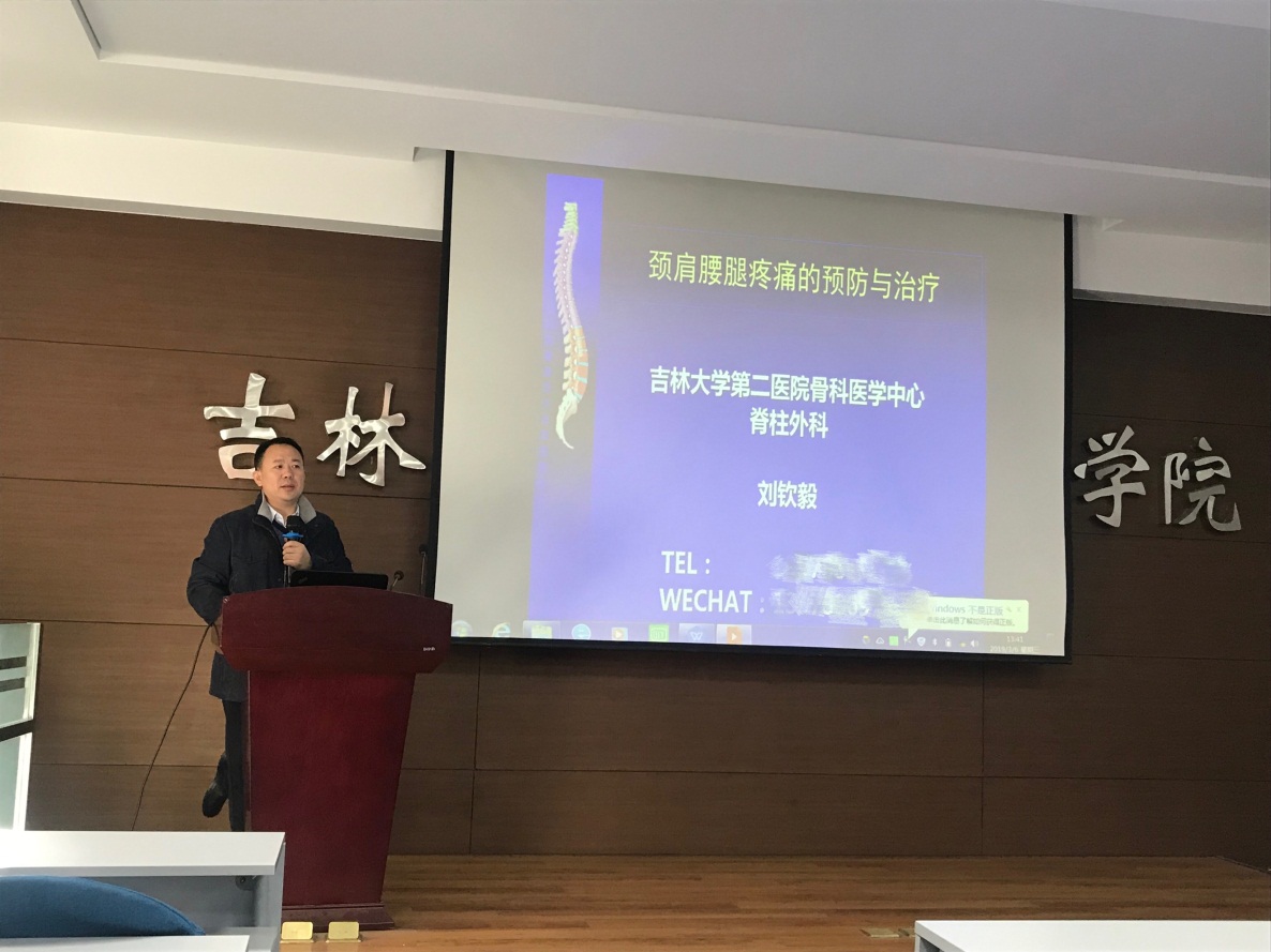 联合行政学院、体育学院在生命科学楼107室举办了一场“颈肩腰腿疼痛的预防与治疗”讲座,特邀请吉大二院骨科医学中心脊柱外科副主任刘钦毅教授主讲。女优