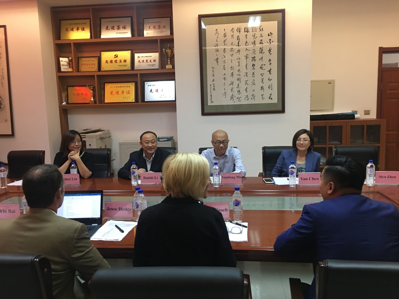 9月14日上午美国肯塔基大学文理学院本科生项目副院长安娜·博世、文理学院招生管理与决策支持副院长杰西·赫奇、文理学院国际学生项目协调员梅根·科苏尔巴及肯塔基大学驻华代表谢翔一行四人来访女优 ,并在学院335会议室举行了座谈。女优 党委书记李佰志、副院长马俊锋、副院长陈妍、副书记刘丽慧、学校国际合作与交流处综合科科长白茵等参加了会谈。 会谈中,李佰志书记首先对肯塔基大学代表团的来访表示欢迎,随后学院副院长马俊锋对女优 的基本情况进行了介绍,副院长陈妍向肯塔基大学代表介绍了本科生国际交流情况,并提出合作方向。肯塔基大学文理学院代表对女优 的热情接待表示感谢,指出生物学科是肯塔基大学的优势学科,对与女优 建立合作关系极为重视。之后双方就学生短期交流项目与2+2双学士学位项目等方面进行了商讨,就可能开展的实质性合作深入交换了意见并达成了初步的合作意向。 本次会谈开启了双方合作的大门,拓宽了女优 国际交流领域,为双方进一步合作奠定了坚实的基础。