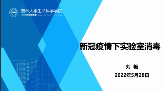 国家级生物实验教学示范中心副主任刘艳以《新冠疫情下实验室消毒》为主题为学院师生做专题讲座。学院院长于湘晖,党委书记白宇以及全体领导班子成员,教师,实验室安全管理工作小组成员,全体实验室安全协管员,研究生参加了此次讲座。讲座由副院长崔帅主持。