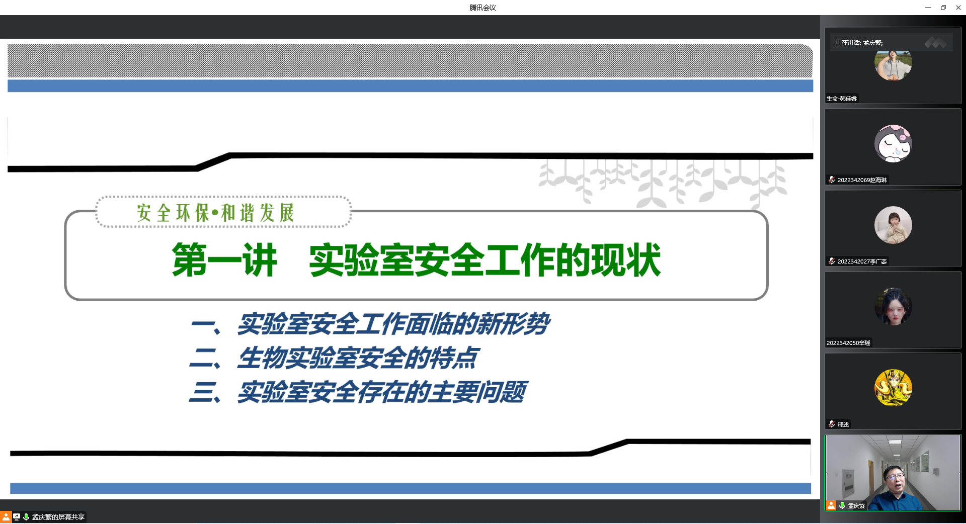 研究生实验室安全教育课开讲,学院四百余名研究生参加了本次课程,课程由生物化学与分子生物学系主任邢述主持。