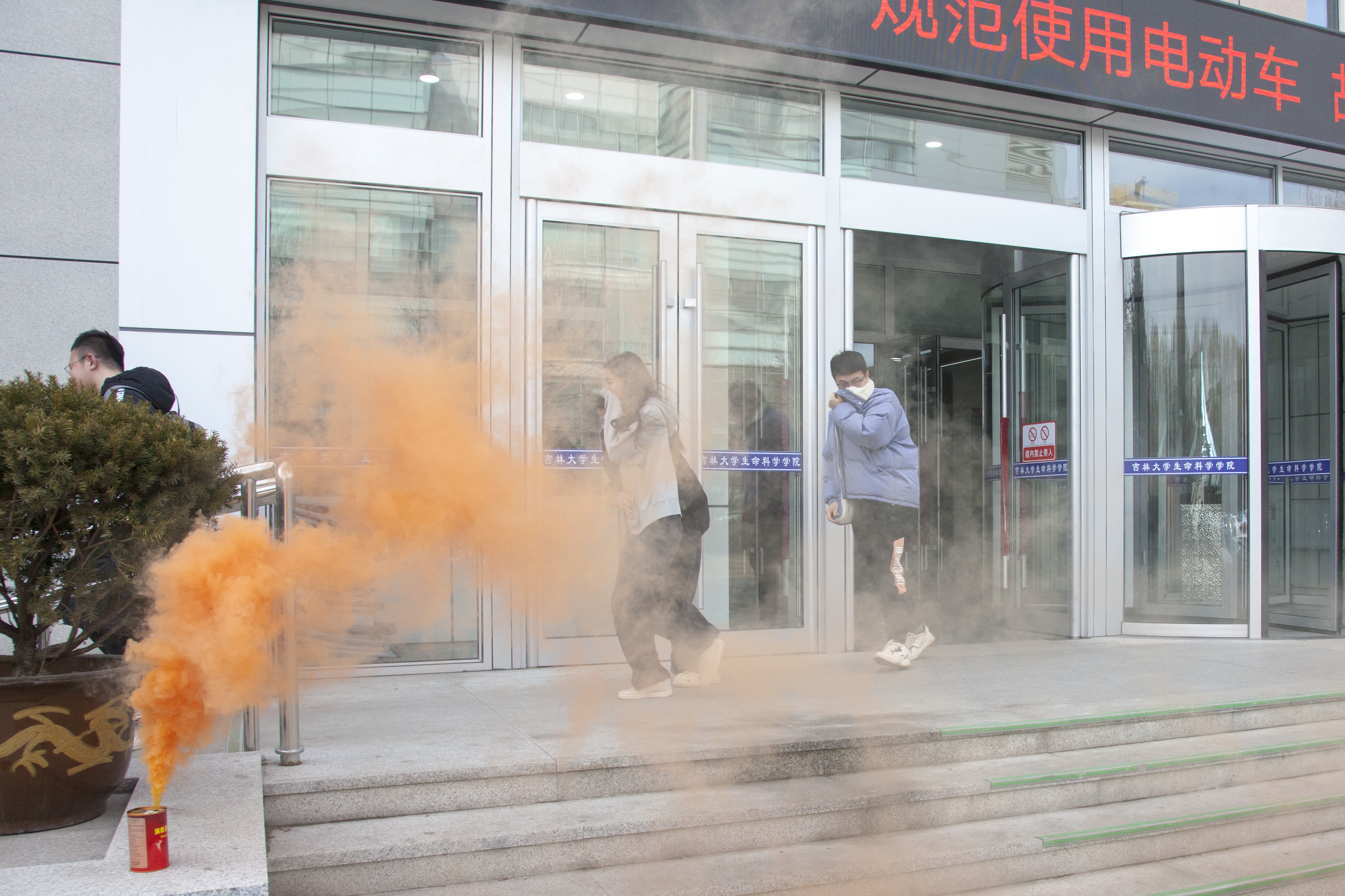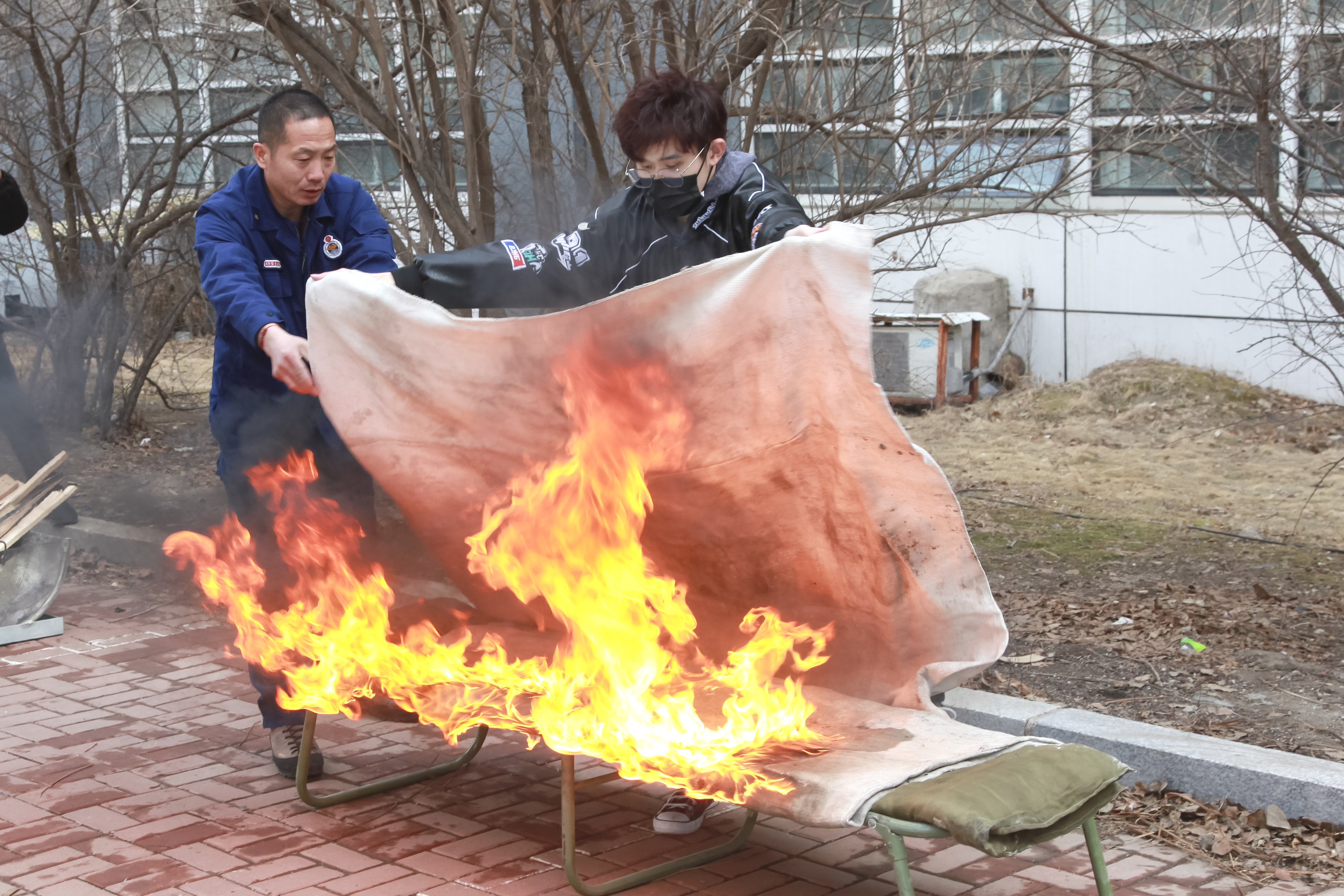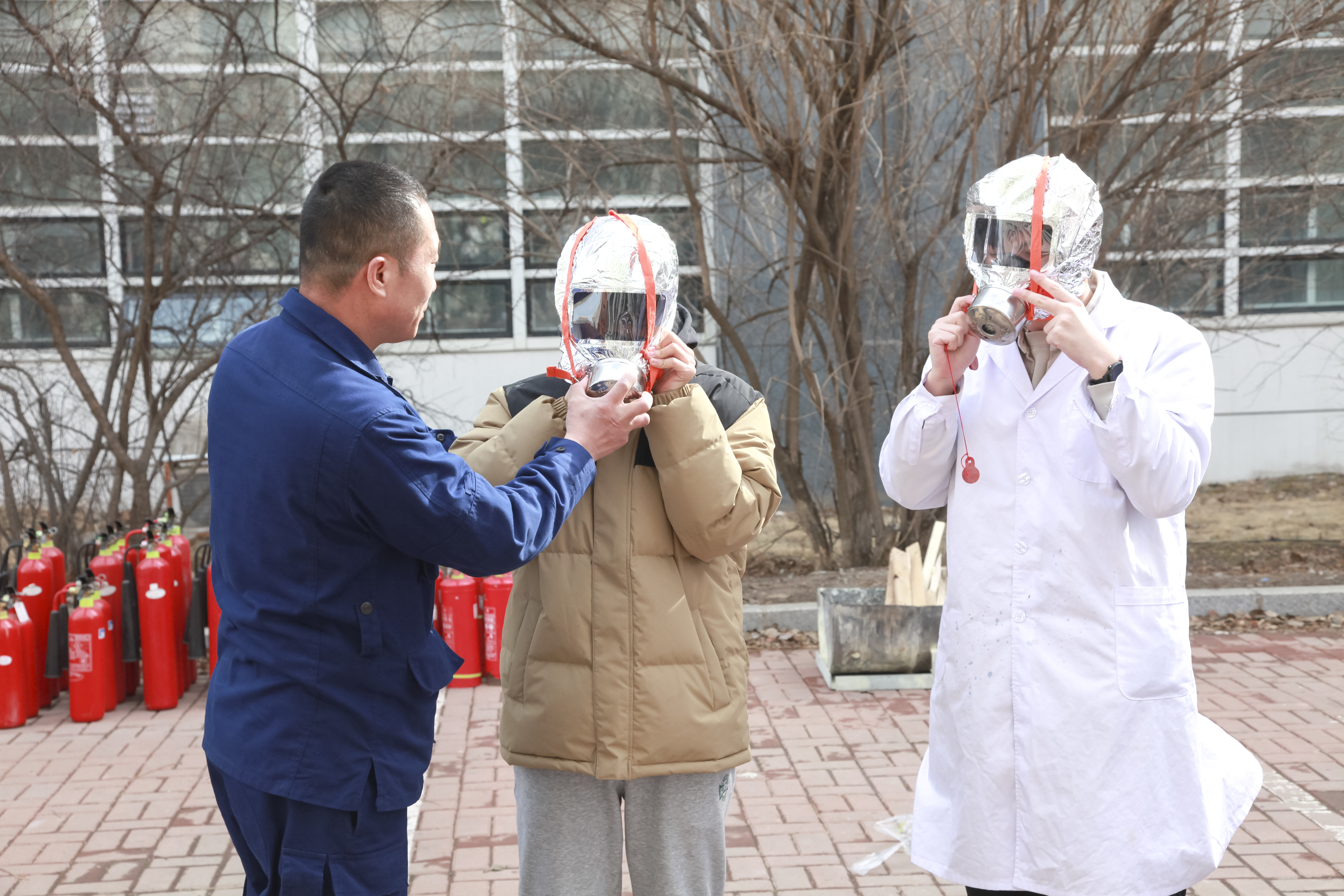 14:30分,“火警信号”发出,各楼层迅速组织师生进行疏散,并按照预案进行火灾报警、人员疏散自救、抢救伤员、扑救初级火灾,全体师生在应急疏散中积极配合,听从指挥;各岗位人员各司其职、各尽其责、分工明确、有序地完成了疏散活动。在灭火演练过程中,保卫处工作人员现场讲解消防逃生面具、灭火器和灭火毯的正确使用方法并进行示范,邀请在场同学以互动式的方式详细地演示了使用方法。