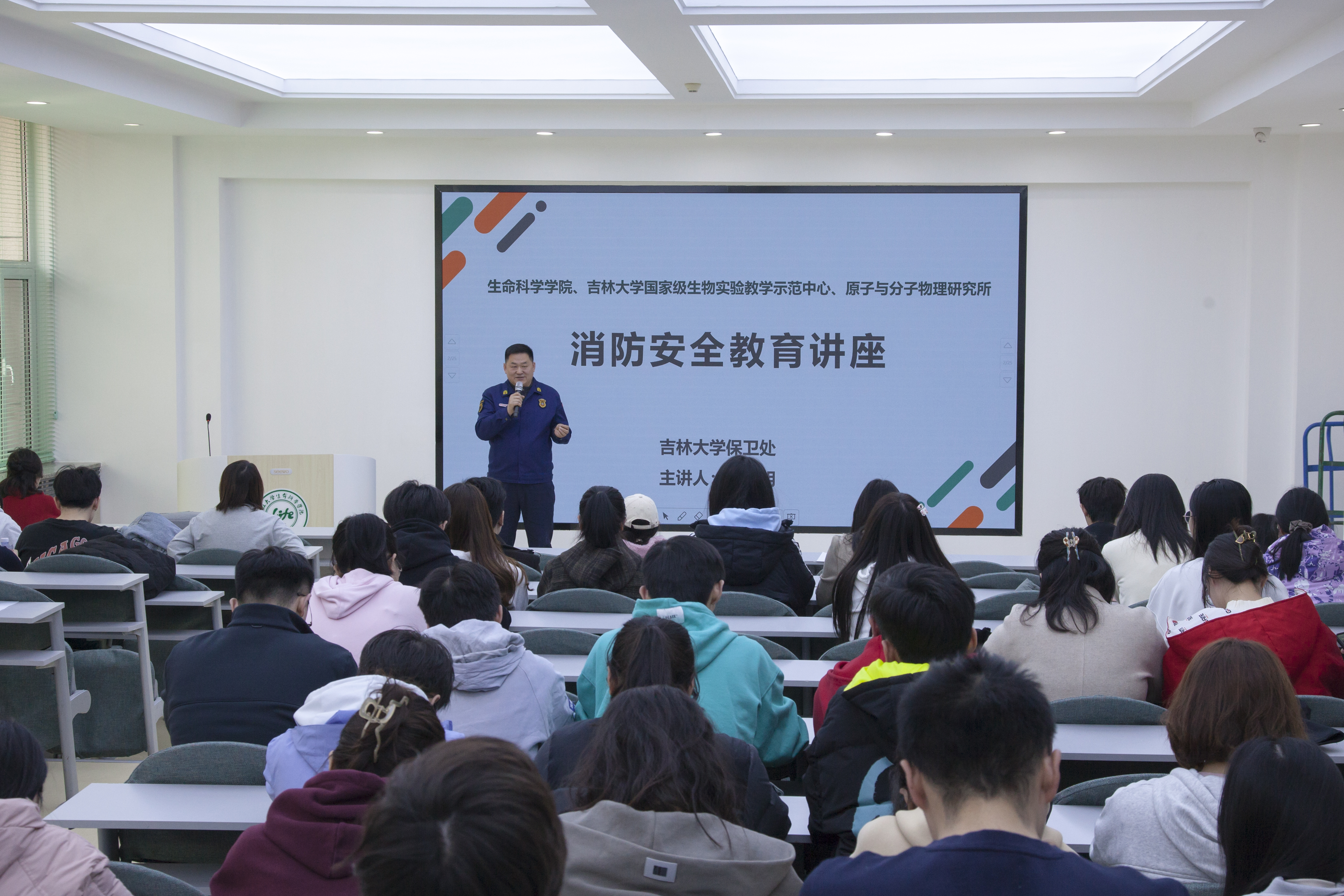 国家级生物实验教学示范中心、原子与分子物理研究所联合学校保卫处举办2024年春季消防安全知识讲座及疏散逃生、消防灭火演练,保卫处消防科董立明等同志、女优