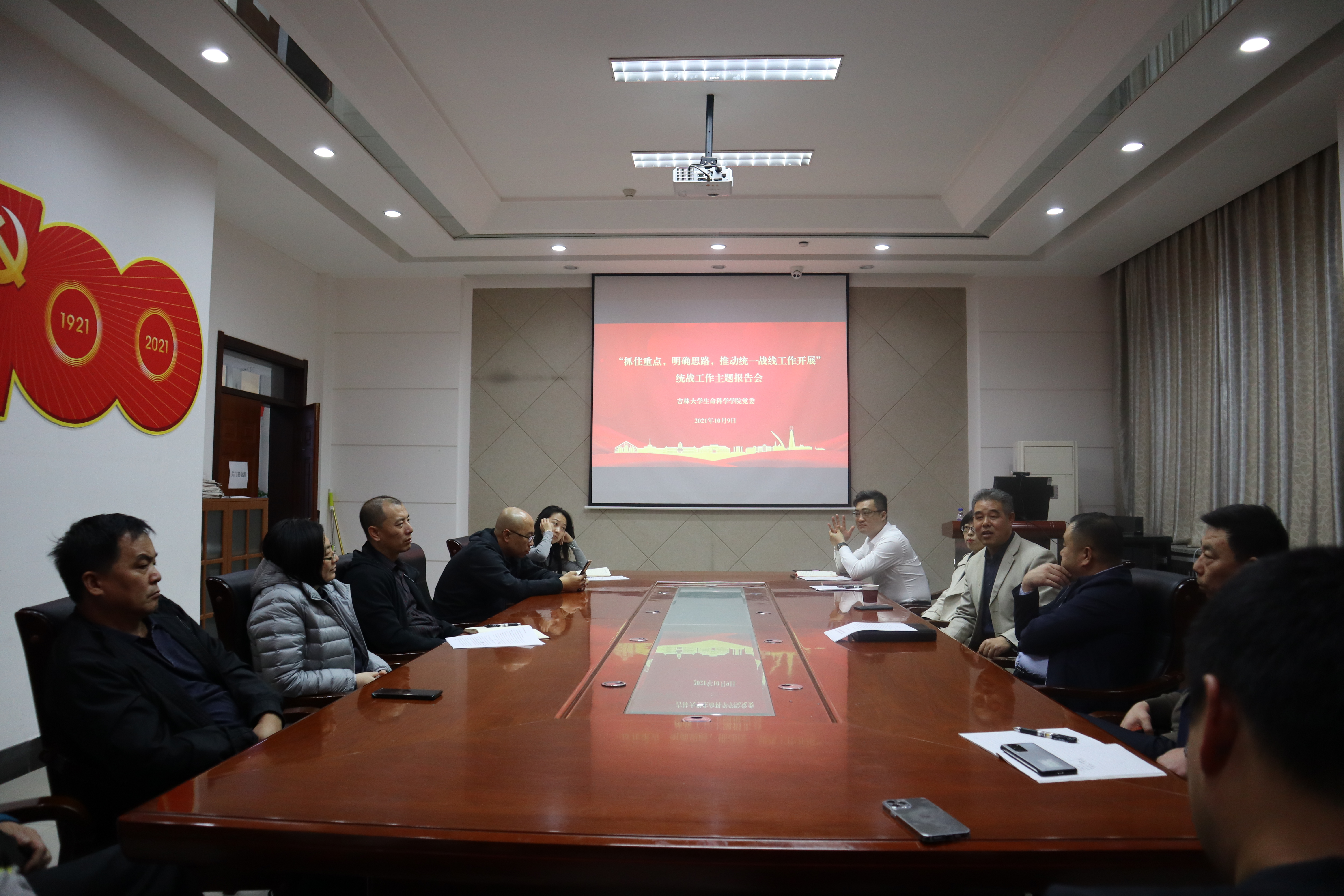 统战工作主题报告会于生命科学楼335会议室主会场、107会议室分会场及线上平台举行。活动邀请党委统战部副部长马忠正作题为《抓住重点,明确思路,推动统一战线工作开展》的主题报告。会议由学院党委书记白宇主持。