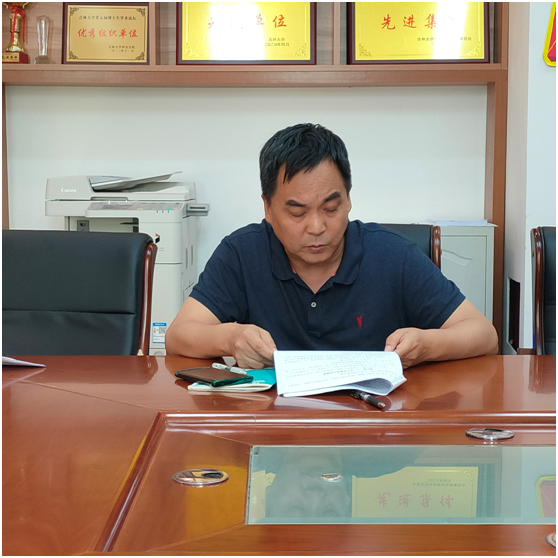 在生命科学楼335会议室召开理论学习中心组(扩大)学习会议。会议由学院党委书记白宇主持。