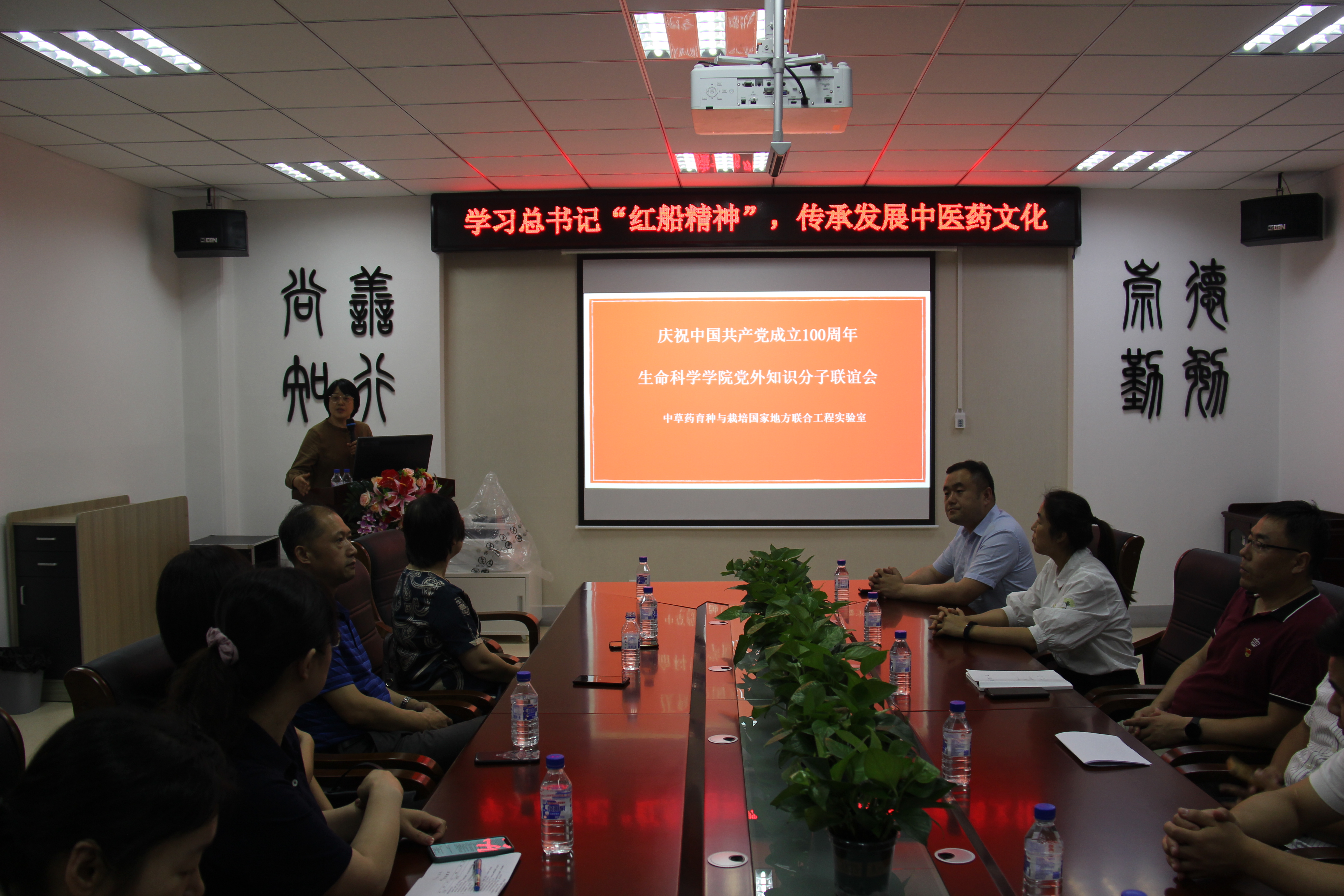 活动伊始,中草药实验室老师李江楠做了《中国共产党发展历程》的主题报告,与参会师生共同学习以及回归了中国共产党100年的发展历程;邢茗在报告中对中草药育种与栽培国家地方联合工程实验室的建设与发展的历程进行了介绍;学院党外知识分子联谊会秘书长孙凤英以《统战史话》为题,着重讲解了党外人士以及统一战线在共和国建设中发挥的重要作用;接下来,中草药实验室主任陈霞的报告《关于中医药文化的思考》将本次活动推向高潮。她从“中医药历史”“中医药国内外现状”“中医药的核心理论与思想”以及“中医药的启迪”等方面充分详实地与参会师生分享了多年来对我国中医药文化的思考及心得,并提倡对我国的传统瑰宝——中医药要常怀敬畏与感恩,并充分传承以及发扬光大!党委书记白宇在总结中,首先对在建党百年的伟大历史时刻,女优