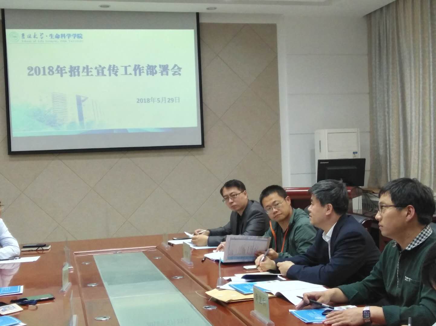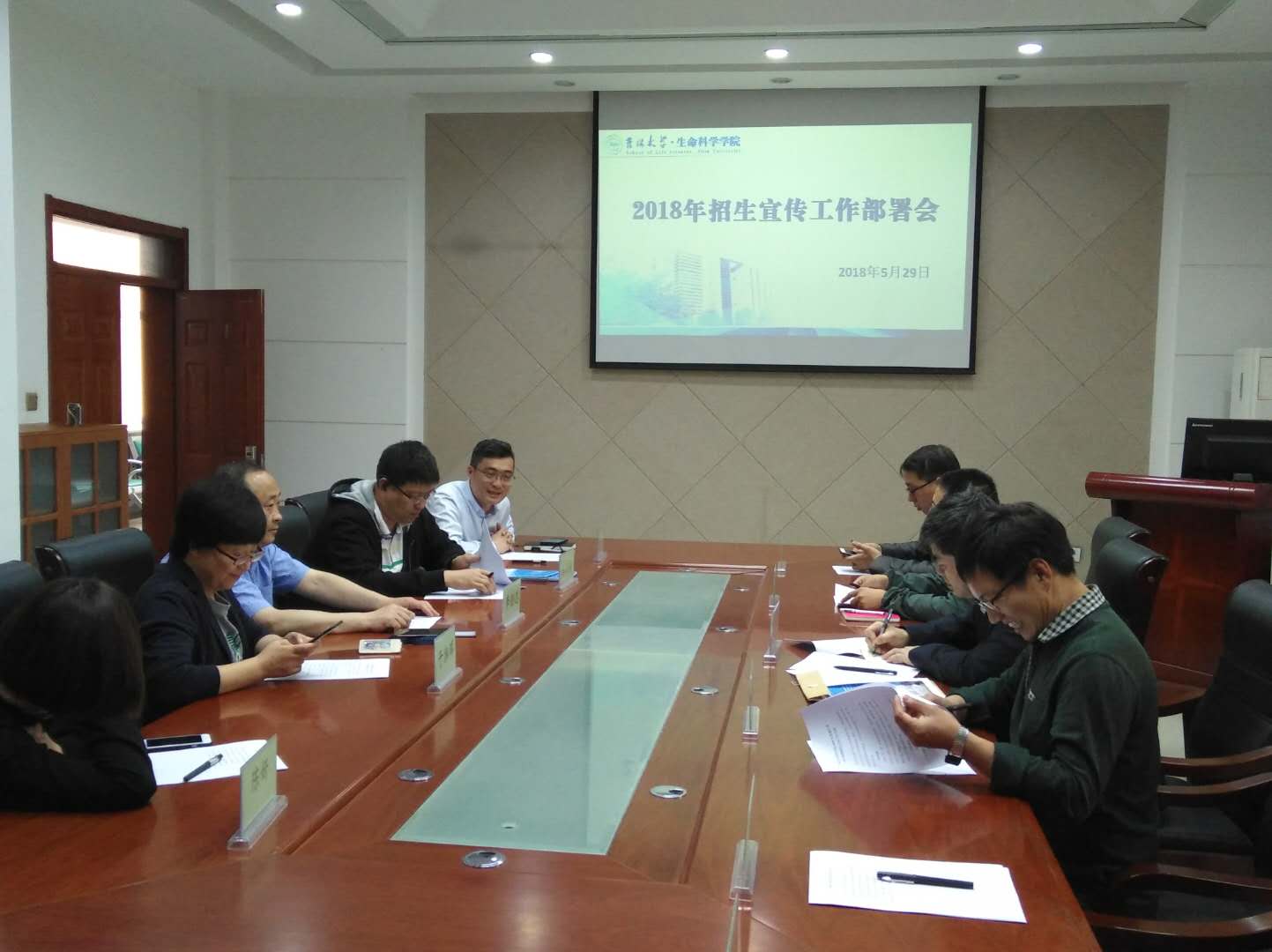 招生宣传工作的有序开展,5月29日,在生命科学楼335会议室,召开了2018年招生宣传工作部署会。参加本次会议的有学校招生工作办公室信息科科长韩冰雪、院长于湘晖、党委书记李佰志,以及学院招生宣传工作小组的各位老师。会议由学院党委副书记崔帅主持。