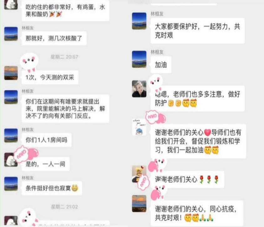 本科生班主任、研究生导师积极参与疫情防控宣传教育工作,云端传递爱与温暖,加强封寝期间的学生思想引领、心理安抚及学业就业指导工作。