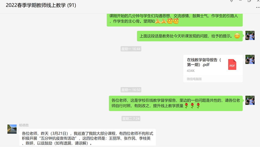 结合学校“2022年春季学期在线教学督导工作”要求,对线上教学开展有效监督,助力在线教学质量不断提高。