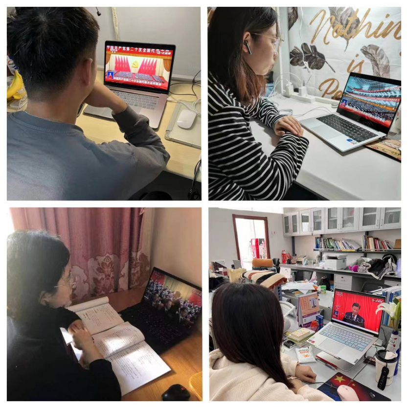 直播结束后,全院师生感慨万端、各抒己见,以饱满情绪、昂扬斗志共庆中国共产党第二十次全国代表大会胜利召开!