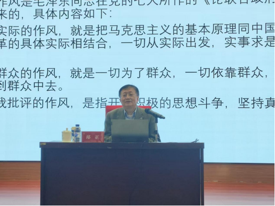 校务委员会副主任、东北振兴发展研究院院长邴正围绕“发扬党的优良作风 加强新时代队伍建设”作专题辅导报告。学院全体党员领导干部及全体师生党员参会。