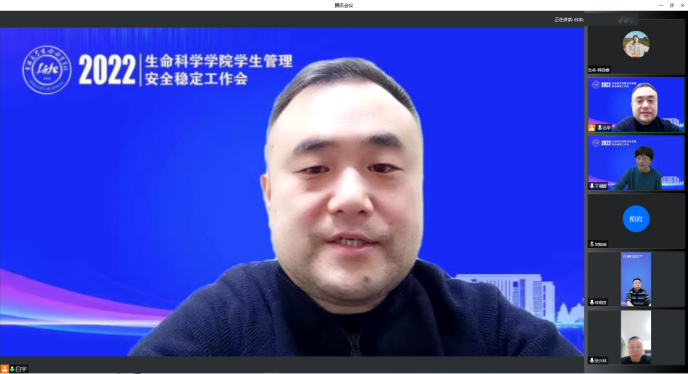 林相友通报了当前研究生管理的基本情况,并针对下一阶段的工作开展作出几点要求。他提出,一是要构筑全员促安全稳定工作格局,充分发挥导师作用,与学生管理干部互为补充,协同做好学生心理、学业、经济、就业、安全等相关工作;二是要畅通信息反映渠道,及时关注学生诉求,积极把握学生动态,用最高效方式反映和解决问题;三是要筑牢安全稳定底线,严格抓好实验室安全、寝室安全卫生工作,严肃做好核酸检测结果核验和晚点名工作,切实保障校园安全。