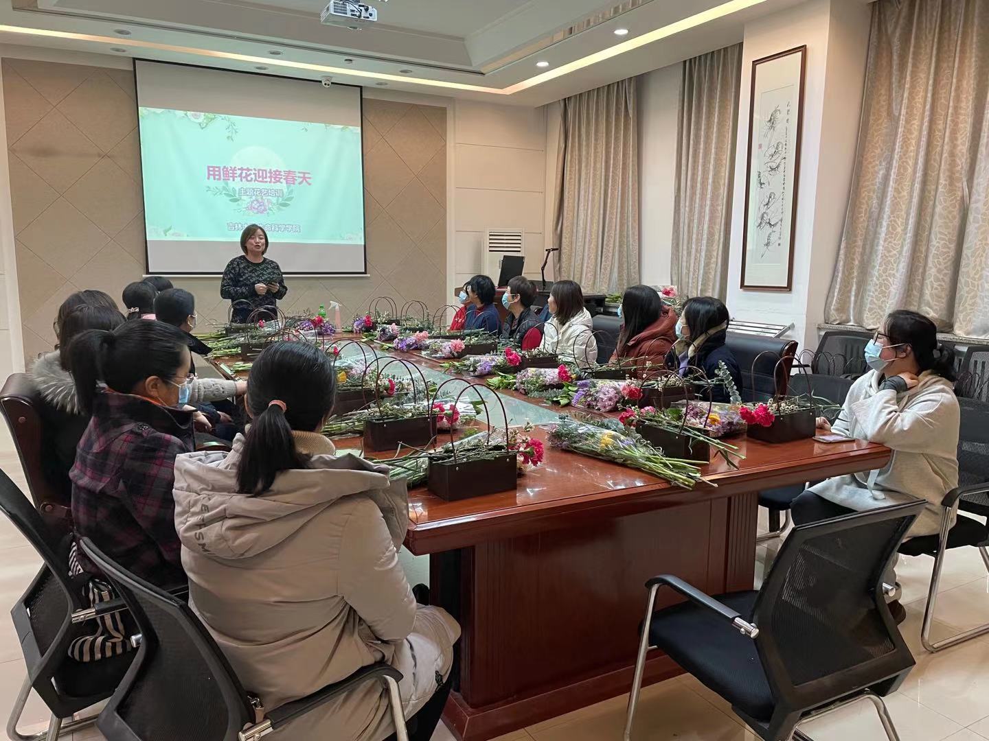 女教职工健康、向上的良好精神风貌,值此“三八”国际劳动妇女节来临之际,特开展“用鲜花迎接春天”插花艺术体验活动。活动由女优
