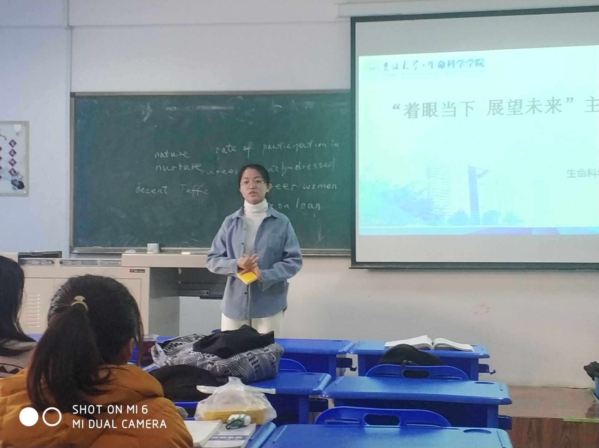 2020级4班于2020年11月30日举办了以“着眼当下,放眼未来”为主题的班会活动,旨在帮助大一新同学更好的适应大学学习环境、了解所学科目的学习方式、更快的掌握大学学习的方法,为今后学习历程打下稳固的基础,树立长远的目标。