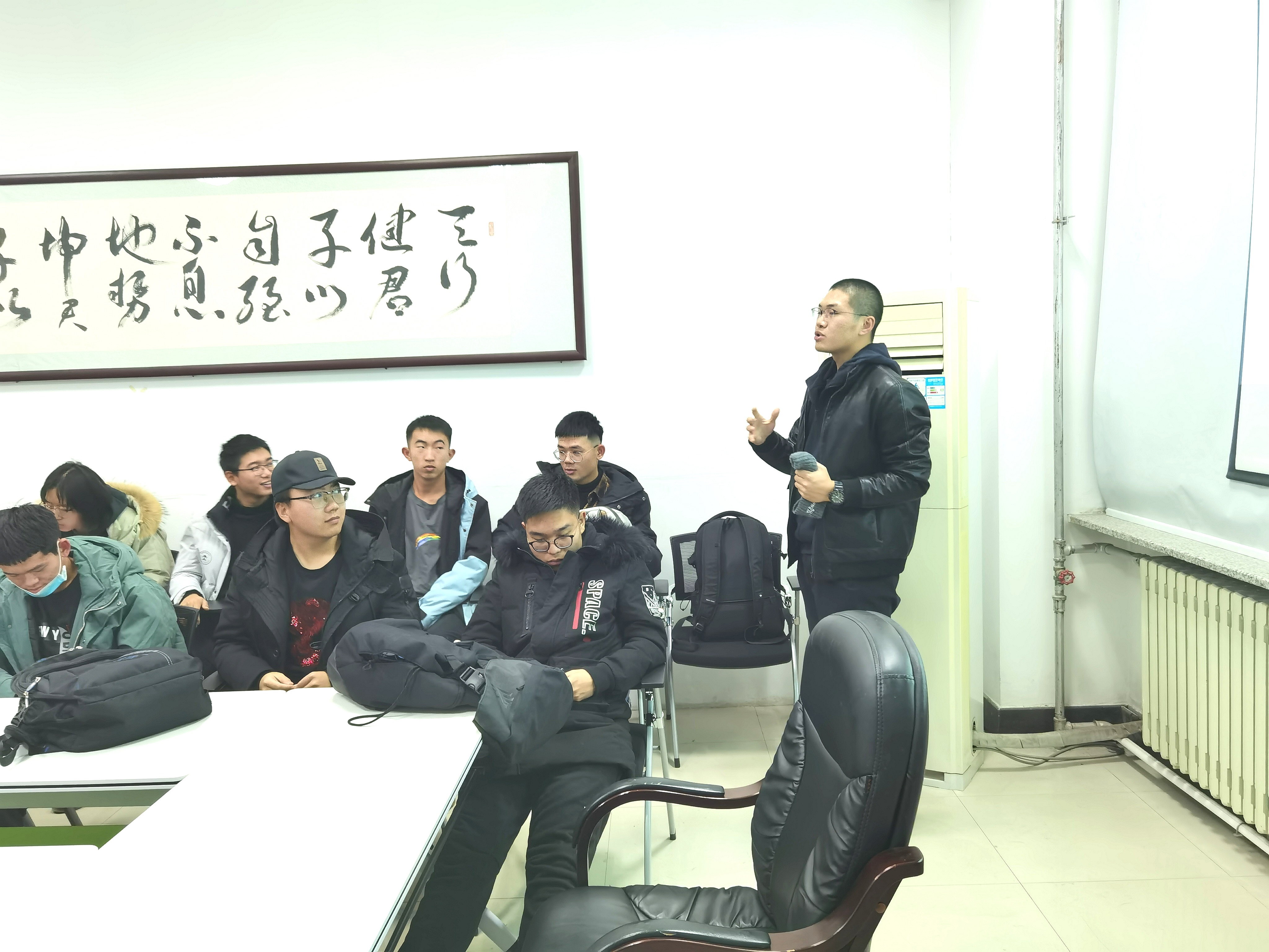 接下来是辅导员齐鹏老师的讲话,他强调了对于学习以及考试的多方面要求。首先一定要注重考试纪律,诚信考试。其次,要学会把握学习状态,学会合理利用时间。最后,齐老师对于挂科问题展开讨论,说明认真学习的重要性。