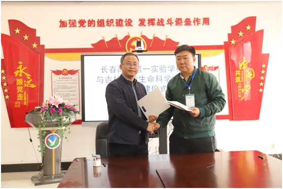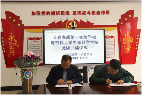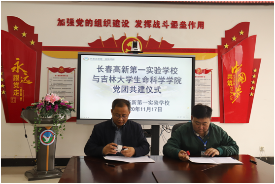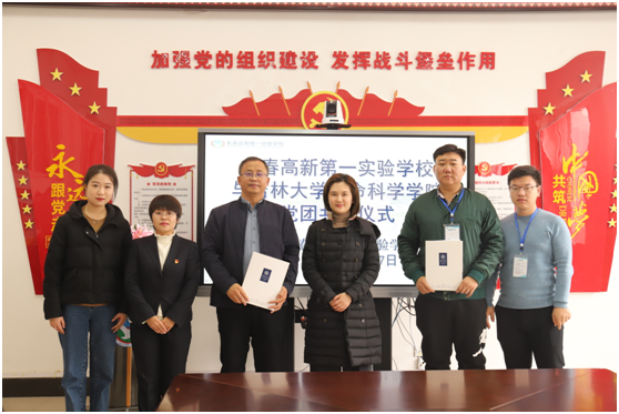 与长春高新第一实验学校党团共建交流暨大学生志愿服务基地签约仪式在高新第一实验学校会议室举行。参加签约仪式的有长春高新第一实验学校校长兼党支部书记张安辉、党支部副书记李兰君、党政办公室主任魏盛楠,女优