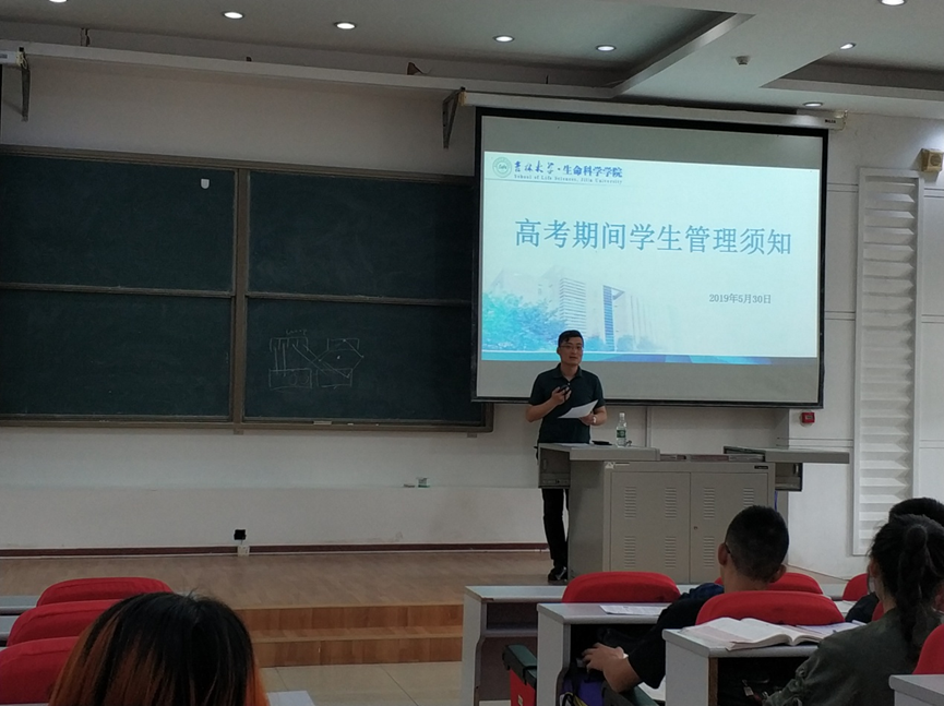 各年级辅导员强调了考风考纪,再次强调了大学生不得替考高考的相关事宜,此外,期末来临,老师们鼓励同学们认真学习、做好复习计划,沉着应考、诚信应考。然后老师向同学们传达了后勤部门暑期对南苑宿舍楼装修的通知,提醒同学们做好准备。最后,为了积极响应武装部对大学生的征兵入伍号召,老师向同学们介绍了征兵入伍的优惠政策,包括学习、生活和考研等各方面的优待政策,鼓励大家投身祖国边防建设和武装建设,加入光荣的中国人民解放军。