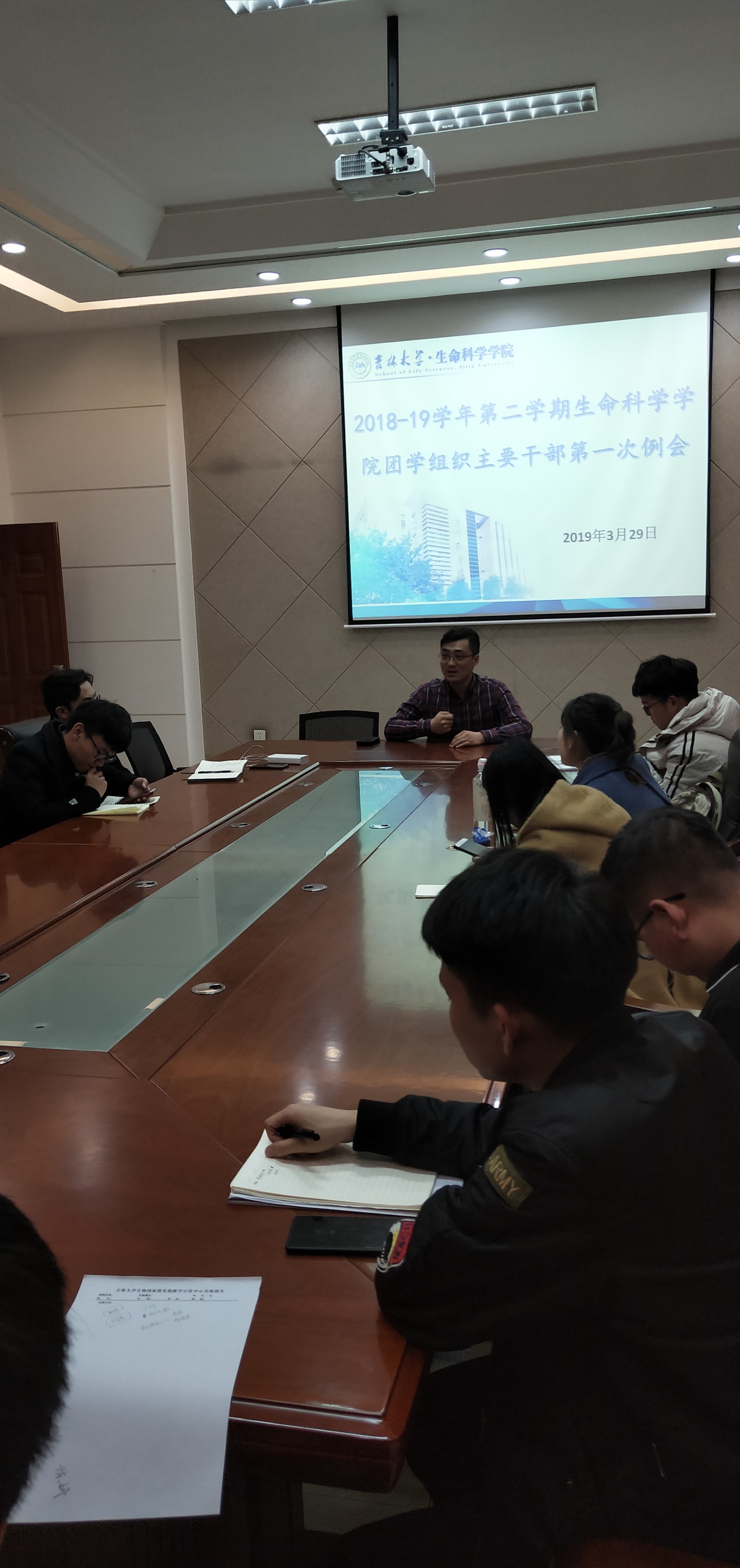 团学组织部长及以上主要学生干部在生命科学楼335会议室召开了新学期第一次工作例会。出席会议的有女优