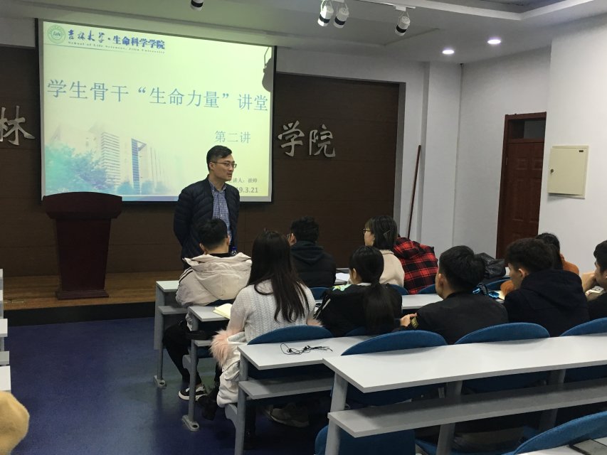 于2019年3月21日14:30在生命科学楼举办学生骨干“生命力量”系列讲堂第二讲。学院党委副书记崔帅,学生会主席丁是卯,团委副书记吴方帆、李美溪,社团联合会主席姜雪,团学联组织部长级以上学生干部。