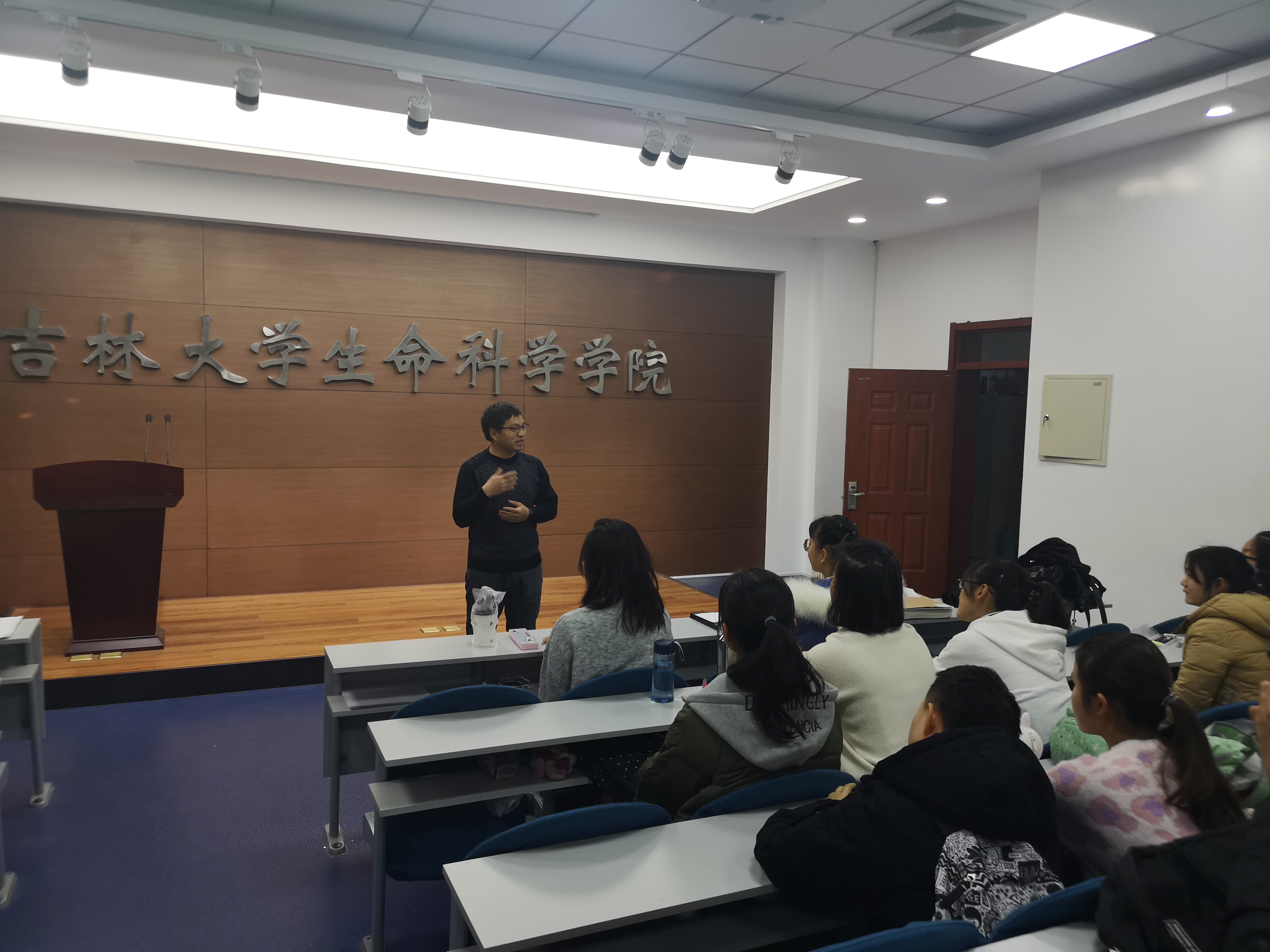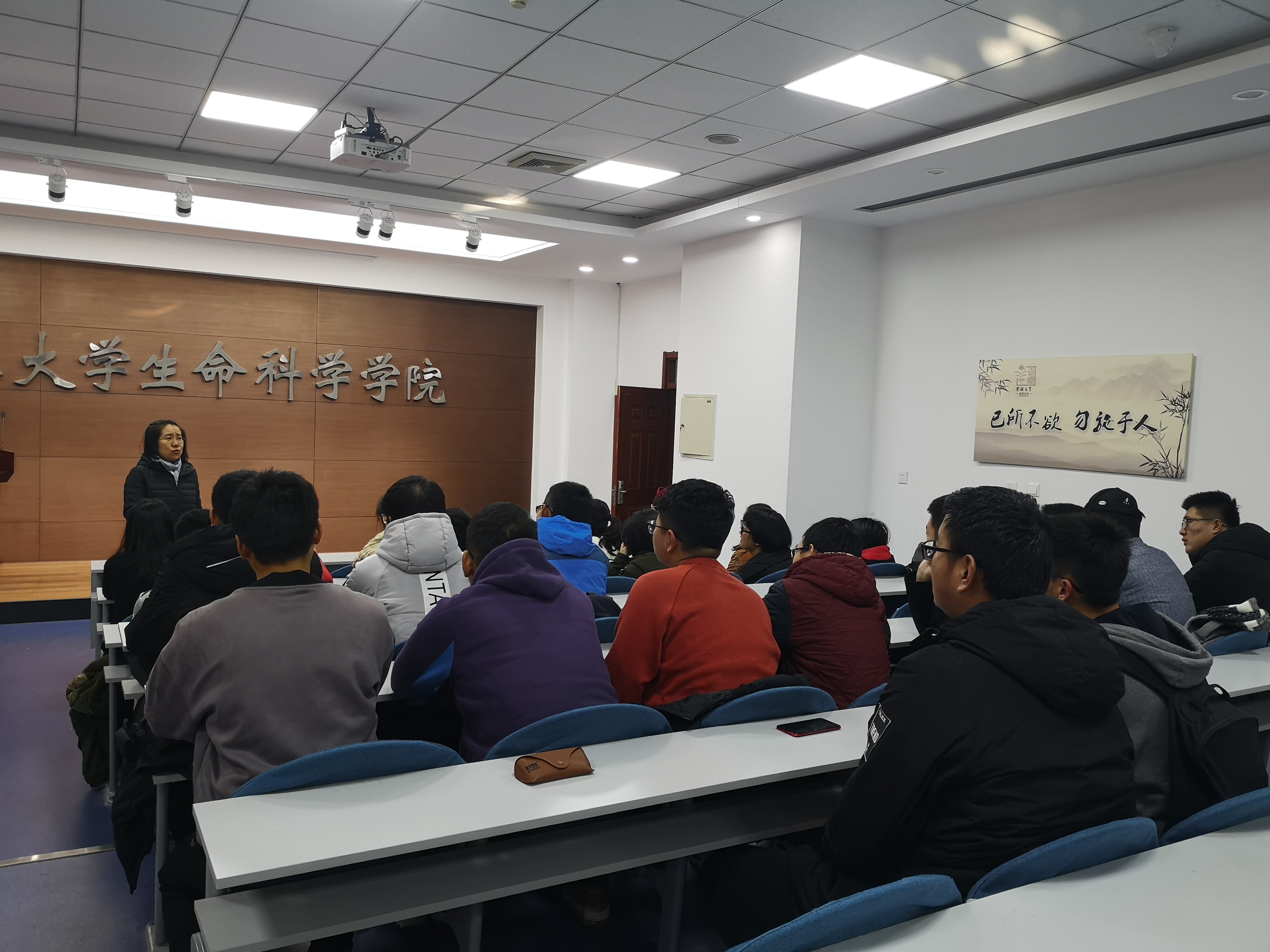 各班见面会上,辅导员丁子芮向同学们介绍了学院本科生班主任聘任工作开展的背景和意义,并向班主任老师们介绍了对应班级学生的基本情况。随后,各班班主任与同学们进行了深入而热烈的交流。131801班班主任黄宜兵老师针对2018级学生发展需求调研的统计结果,逐一围绕“专业学习”、“就业选择”、“课余时间管理”等方面对同学们的困惑进行了集中回应。131802班班主任王冠老师结合自己在学院的求学经历,与同学们分享了大学期间夯实专业基础、培养创新能力、综合全面发展的“成长秘笈”。131803班班主任姜大志老师针对大学生沉迷网络的现象指出,沉迷的本质对个人成长不一定造成负面影响,关键是沉迷的对象,如果沉迷于学习是有益的,而沉迷于游戏,就会因一时“开心”而埋下学业隐患。131804班班主任高朝辉老师为同学们讲解了专业现状及前景,及诸多科研及应用前沿方向,引导同学们关注科技前沿,了解国家需求,将个人成长成才与国家、社会的发展紧密结合在一起。13180805班班主任王雪松老师,围绕“如何较好较快适应大学生活”的主题,鼓励同学们积极转变学习方式,由被动学习转变为主动学习,培养对学术问题、科学现象及本质的好奇心和想象力。13180806班班主任高波老师就学院的发展沿革、本科生培养方案、专业设置特点、学生培养机制进行了详细解读,并着重介绍了生物工程方向未来发展态势及市场用人需求的变化,引导同学们树立专业自信,充分利用学院资源及平台创新创造,成长成才。 13180608班班主任梁清老师从学业及生活等方面为同学们进行了释疑及指导,她希望学会独立生活、独立思考,在不断实践的过程中明确自己感兴趣的发展方向。