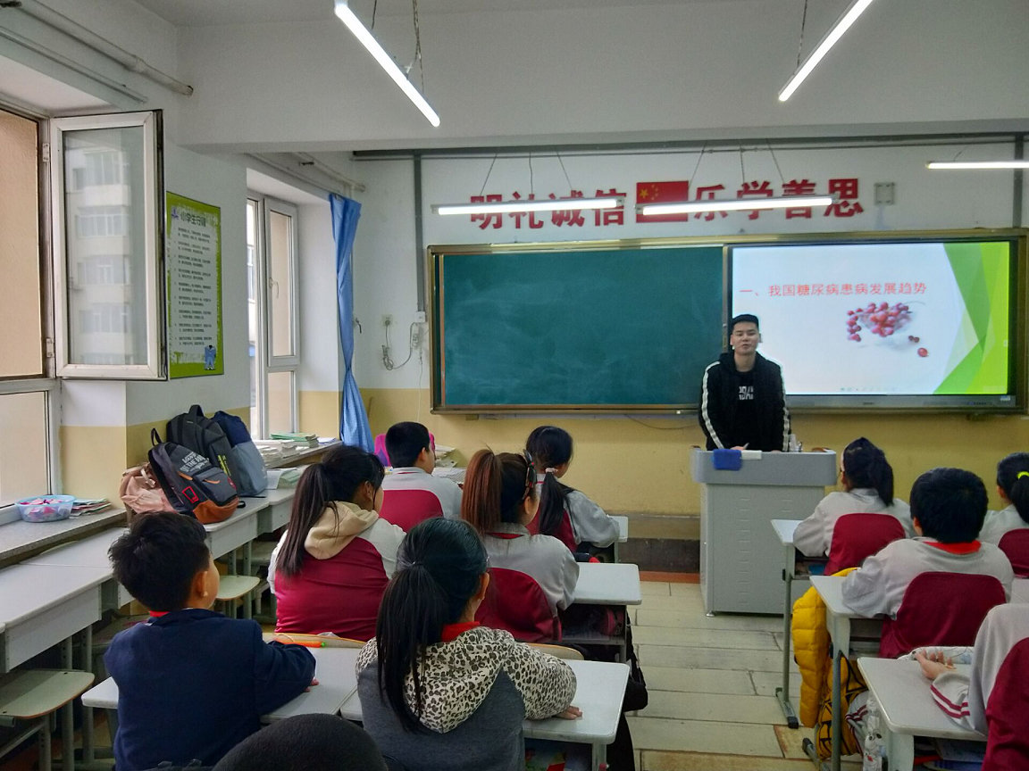 的28名学生分五支队伍前往吉林省长春市朝阳区西安路小学,基于世界糖尿病日的背景,开展了以“认识糖尿病,我们在行动”为主题的科普宣讲活动。