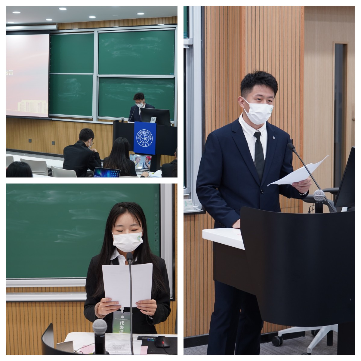 宣读完毕后,由2021-2022学年主席团成员魏羽翀宣读学生会主席团选举办法(草案),会议集体听取并表决通过了学生会主席团选举办法及大会选举监票员、计票员名单、学生会主席团候选人名单。接着由主席团候选人逐一上台做竞职演讲。演讲结束后,与会老师和学生代表通过民主投票,现场核票的方式最终确定孙伟淇、蒋治文、缪镓镓为女优
