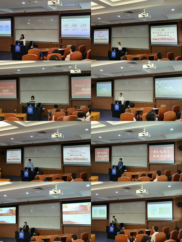 经过初赛,有8位同学进入决赛,分别是戴天雪、谷妍缇、马田益、马于皓、宋文宁、田茄良、赵家琦、祝鸣岐。8位同学从新时代十年的伟大变革、马克思主义中国化时代化、科教兴国战略、文化自信自强、共青团的百年奋斗征程等方面出发,结合自己的理解和认识,深入浅出地为大家讲解了新时代青年应该如何践行党的二十大精神、作为生科学子应该如何把科技报国之志内化于心,外化于行。