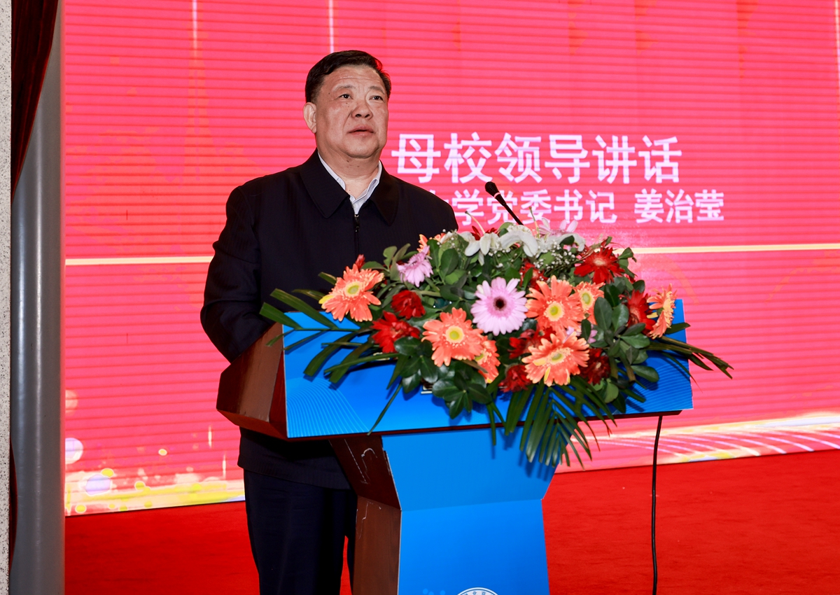 女优 女优 党委书记白宇、党委副书记林相友与校友马骉合影留念
